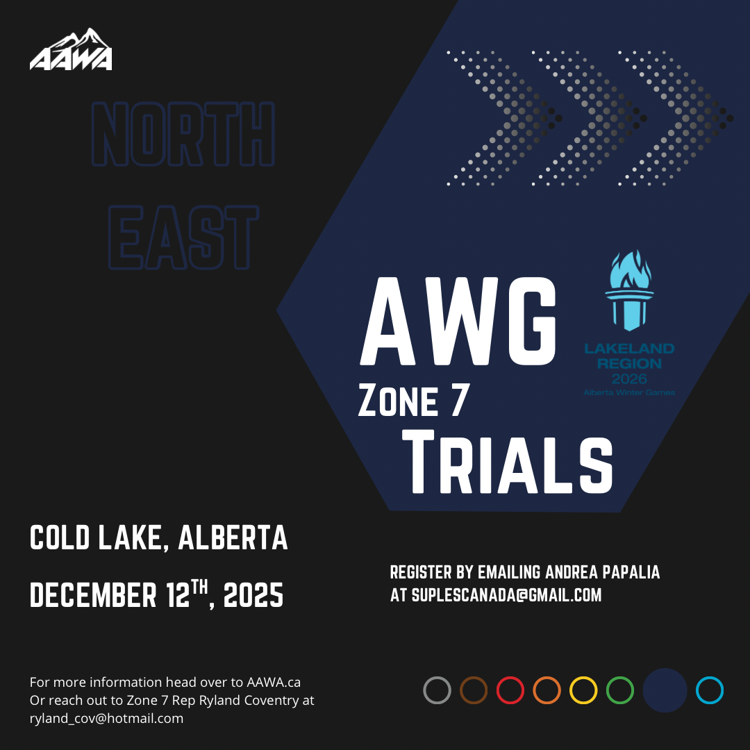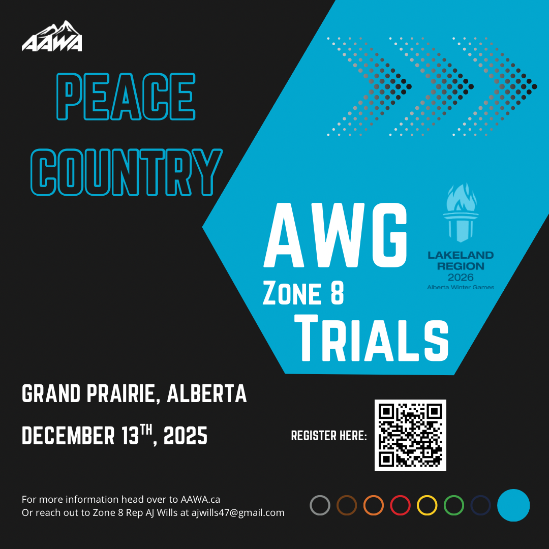 2026 Zone 8 AWG Trials Event Flyer 🖊️ Register by December the10, 2025, $30.00 / Athlete 🗓️ Tournament is December the 13, 2025 🕘 9:30 am: Coaches’ meeting 🕙 10:00 am: First whistle 🕓 5:00 pm: Cleanup and facility close 📍 Slave Lake, Alberta Register Here: https://forms.gle/opsfEs2SK59XzHXdA